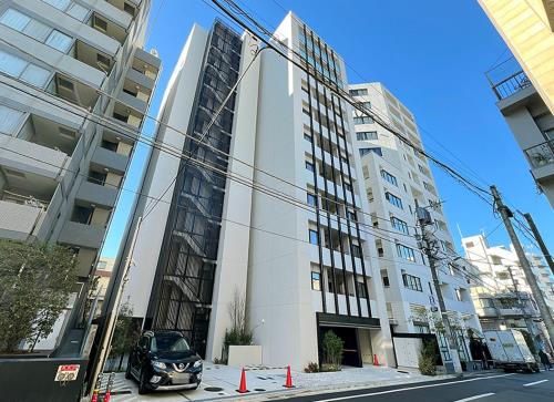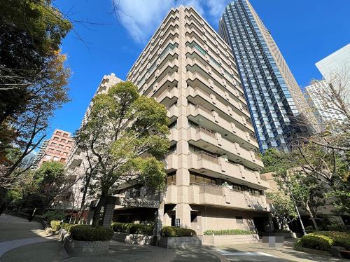 三田駅、田町駅、白金高輪駅の3駅利用可能な便利な好立地にあり、緑に囲まれた住宅街。分譲賃貸マンションで、ゆったりとした敷地に、重厚感のある低層住宅物件。